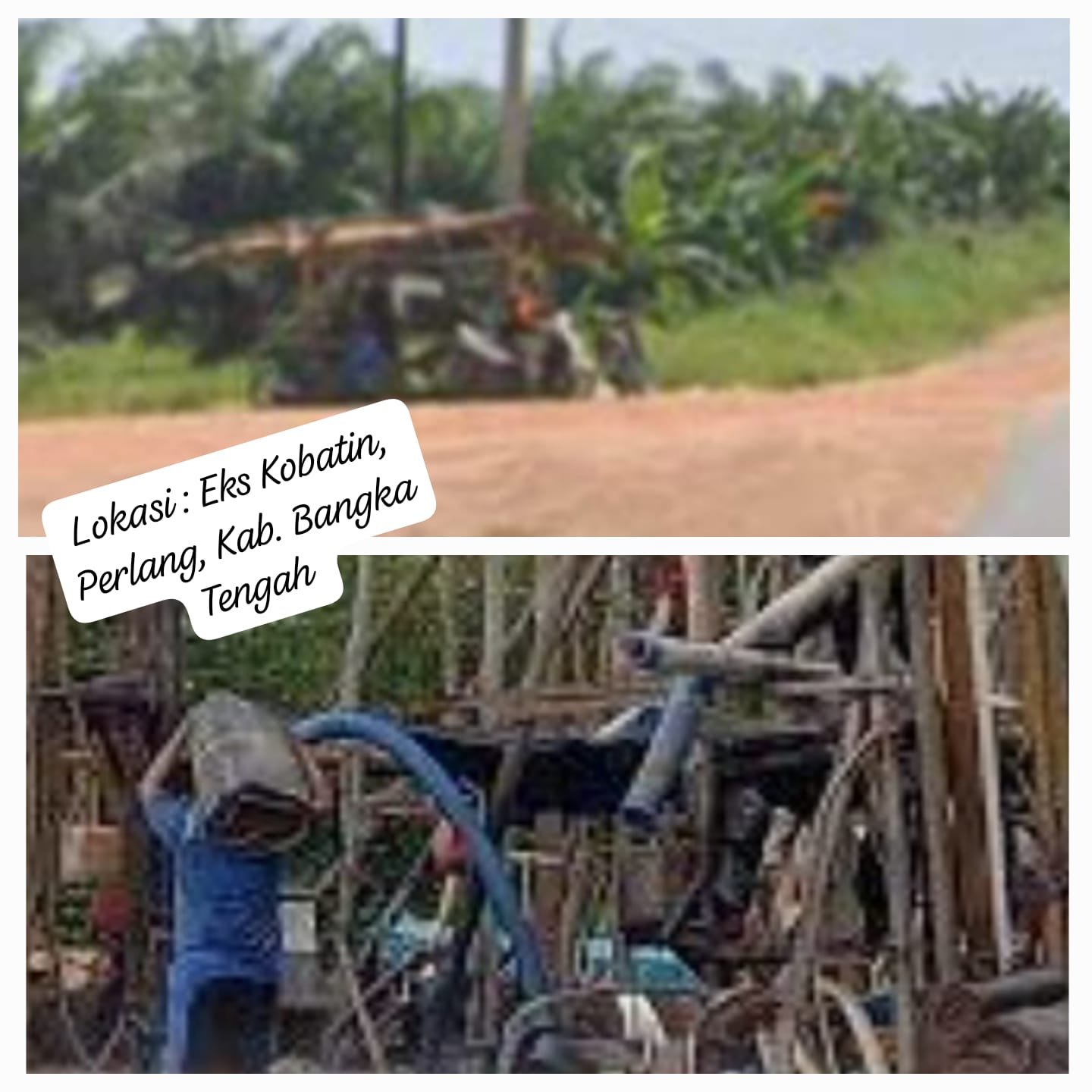 Tim9Jejakkasus.com 22.10.2025 Desa Perlang,Kec. Lubuk Besar, Kab. Bangka Tengah, Ratusan Tambang Ilegal Jenis gerbok/Tower sekala besar didesa perlang, yang berada di daerah lokasi pasir kuarsa wali tampas,di kelilingi pohon sawit, masih masuk IUP kobatin, sudah lama beraktivitas