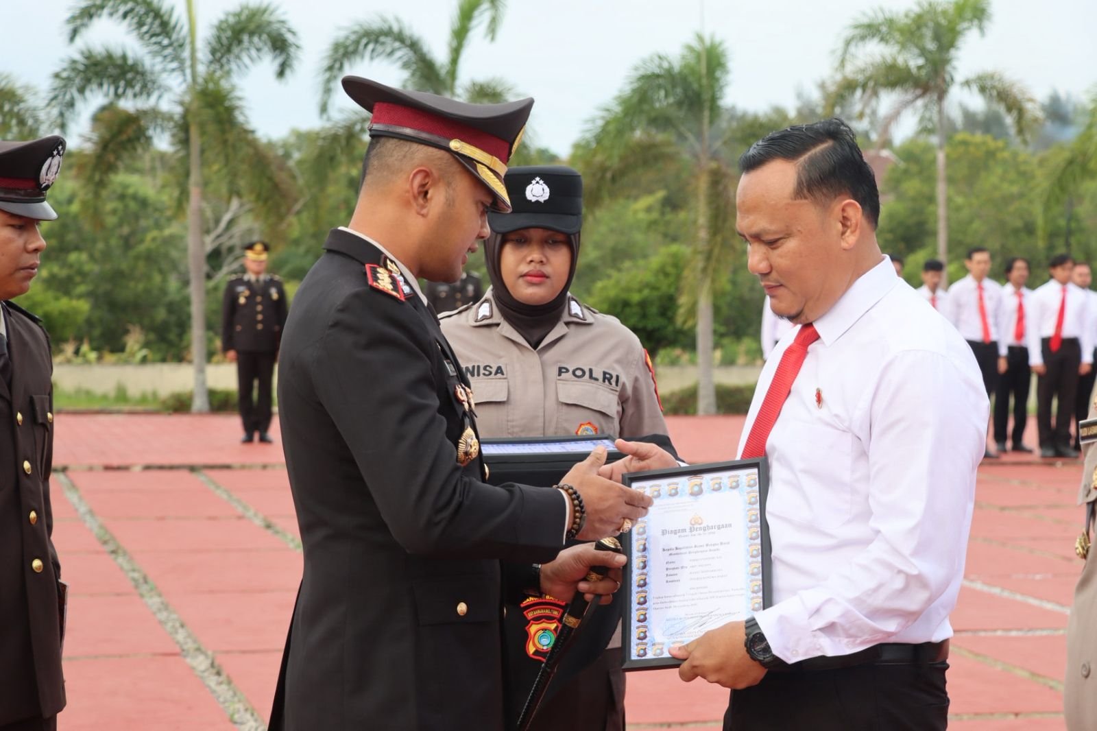Dalam kegiatan tersebut, sejumlah personel menerima penghargaan atas keberhasilan pengungkapan kasus menonjol.