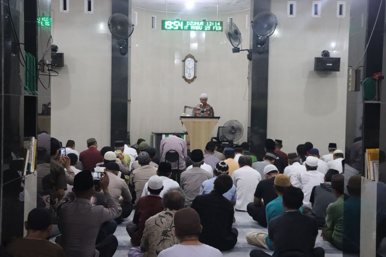 Pesan tersebut disampaikan saat kultum dan penyampaian kamtibmas di Masjid Baitul Mentok, Rabu (25/2/2026) sekitar pukul 19.00 WIB, yang dihadiri sekitar 200 jamaah.