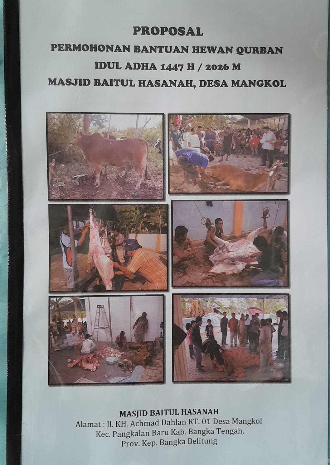Dalam rangka menyambut Hari Raya Idul Adha 1447 Hijriah/2026 Masehi, Tim 9 Jejak Kasus (JK) secara resmi mengajukan proposal permohonan bantuan hewan kurban melalui program Corporate Social Responsibility (CSR) kepada PT Timah Tbk. Pengajuan proposal tersebut ditujukan untuk mendukung pelaksanaan ibadah kurban di Masjid Baitul Hasanah, Desa Mangkol, Kecamatan Pangkalan Baru, Kabupaten Bangka Tengah.