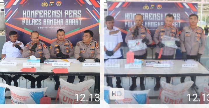 Tim9Jejakkasus.com Polres Bangka Barat menggelar konferensi pers terkait pengungkapan kasus dugaan penyelundupan pupuk bersubsidi seberat 10 ton yang berhasil diamankan jajaran Satreskrim.