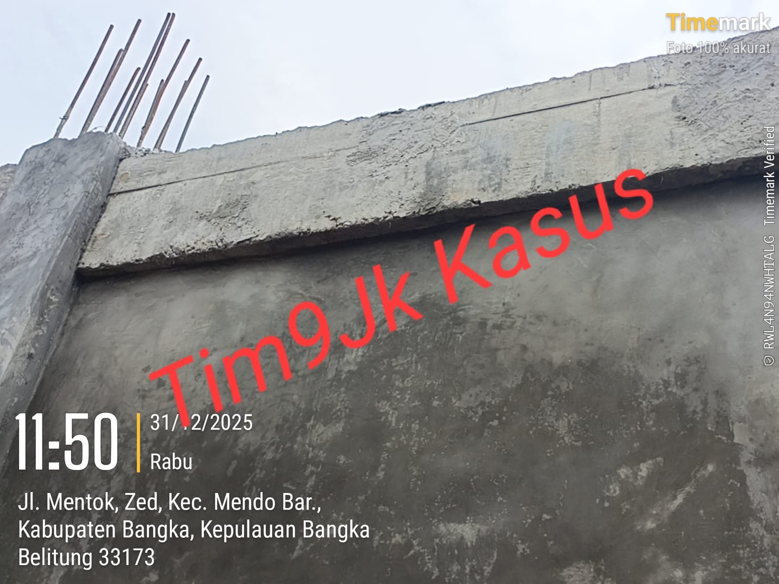 Terlihat di lokasi, beberapa item pekerjaan belum nampak rampung, sebuah bangun masih kelihatan tertutup dengan plastik /terpal hitam, dan besi kolom cor menjulang di atas ring balok cor.