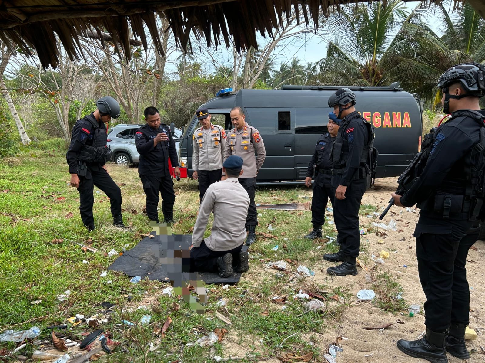 Polres Bangka Barat kemudian berkoordinasi dengan Tim Jibom Detasemen Gegana Sat Brimobda Polda Kepulauan Bangka Belitung untuk penanganan lebih lanjut. Tim Jibom yang dipimpin Ipda Landi tiba di lokasi pada sore hari dan melakukan identifikasi.