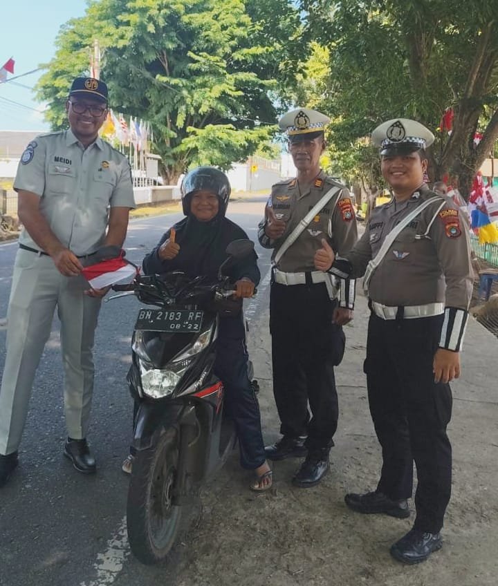 Tim9 Jejakkasus.com – Menjelang HUT RI Ke-80 Kasat Lantas, atas seizin Kapolres Bangka Barat AKBP. Pradana Aditya Nugraha, SH, SIK membagikan bendera merah putih kepada pengguna jalan yang ada di Wilayah hukum Polres Bangka Barat.